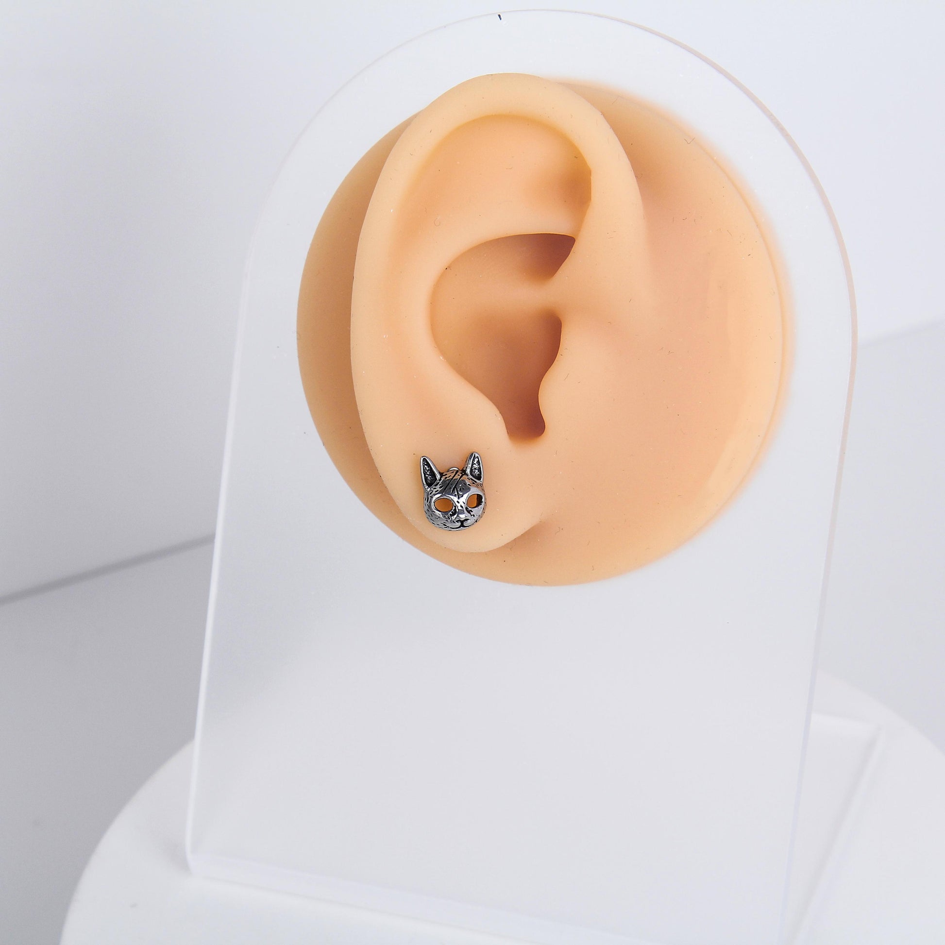 1 count/ Punk cat stud,gothic earring, vintage Stud Earring with round Back, barbell studs –titanium stud, earring, Helix Cartilage Earring for Men and Women
