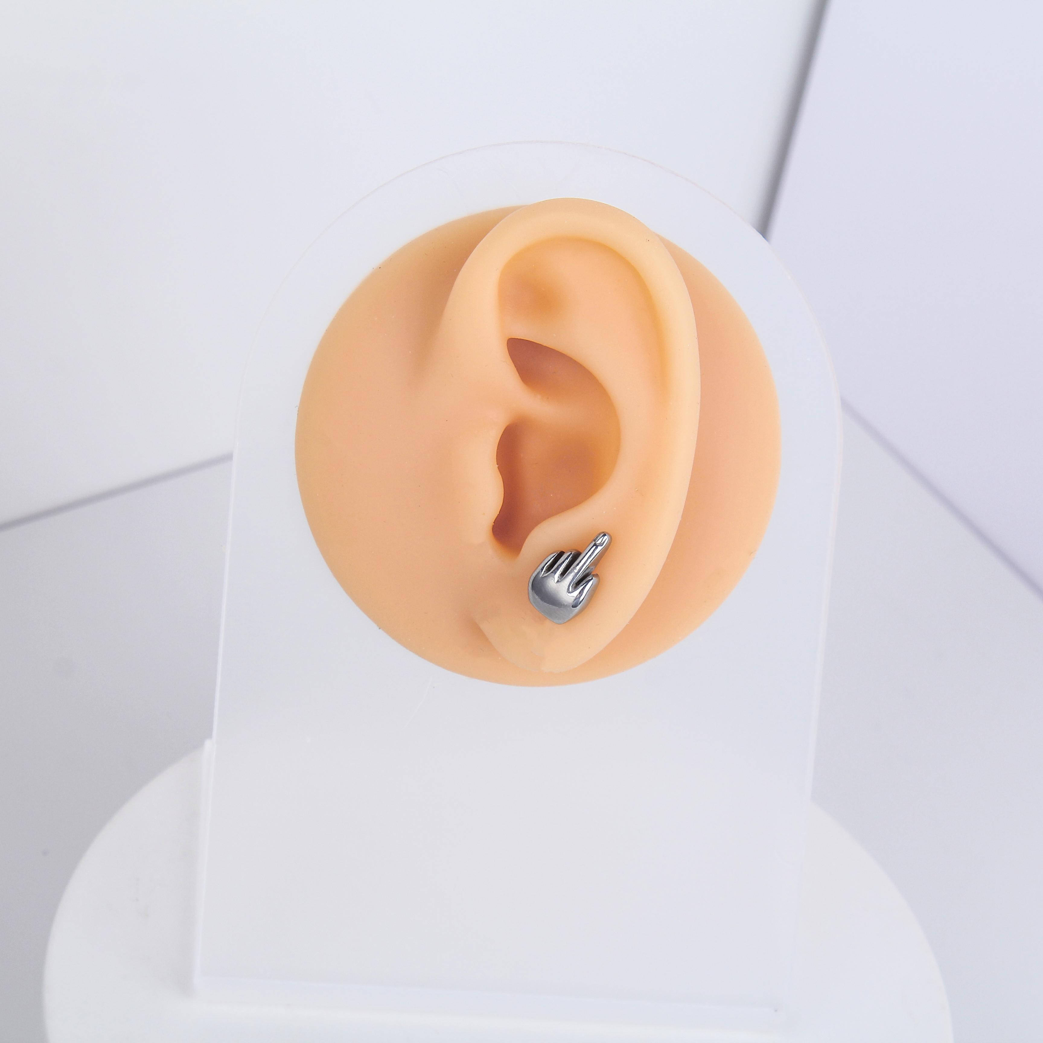 1 count/ Punk Gothic Hand Gesture with Raised Middle Finger Stud Earring, Vintage Cool Stud Earring with Round Back,Barbell Studs –Titanium Stud, Earlobe Earring, Helix Cartilage Earring for Men and Women