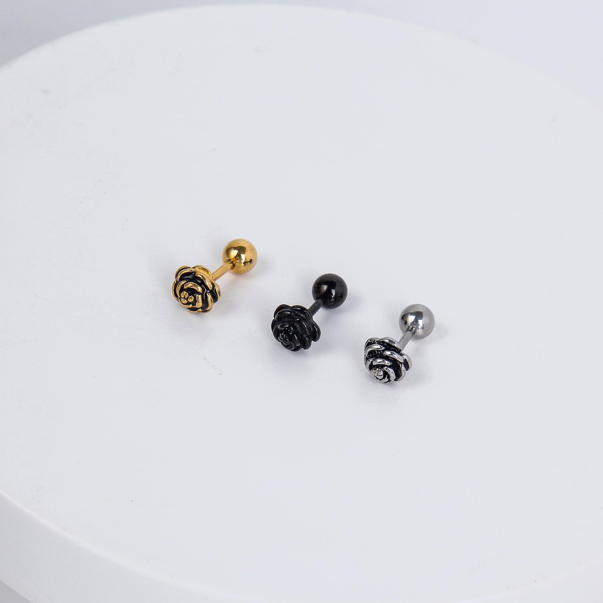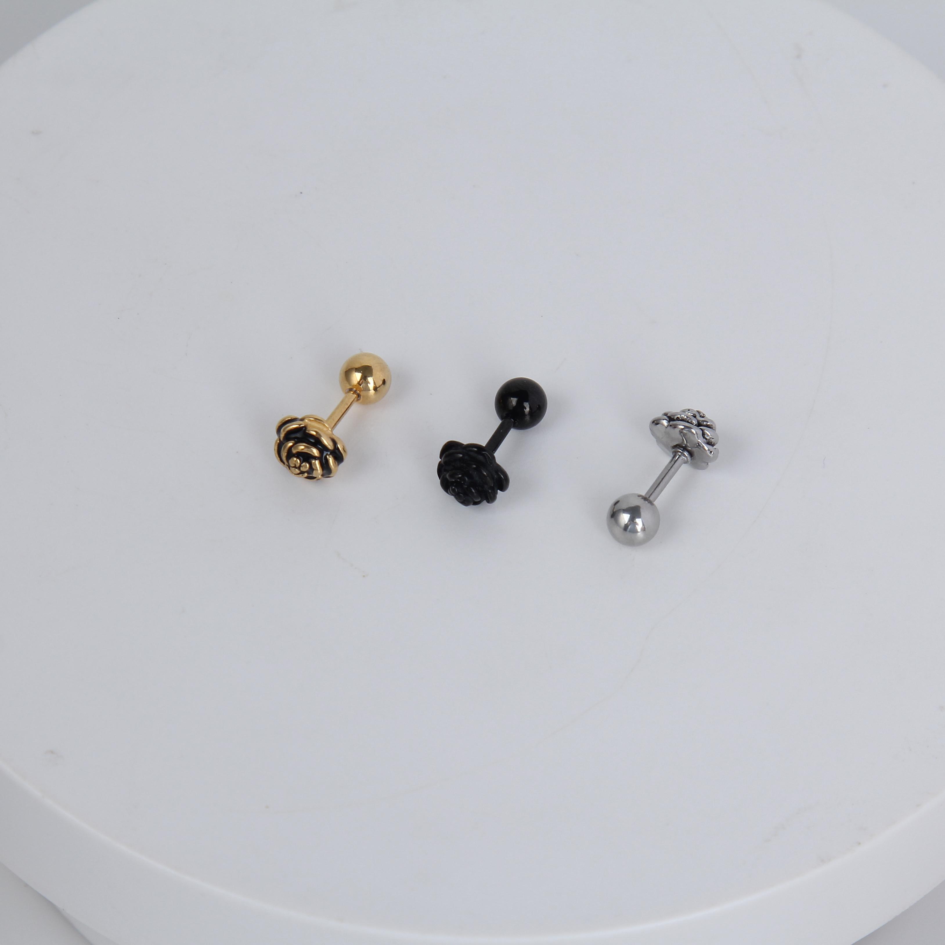 1 count/Punk gothic rose stud earring, vintage Stud Earring with round Back,barbell studs –titanium stud, earring, Helix Cartilage Earring for Men and Women