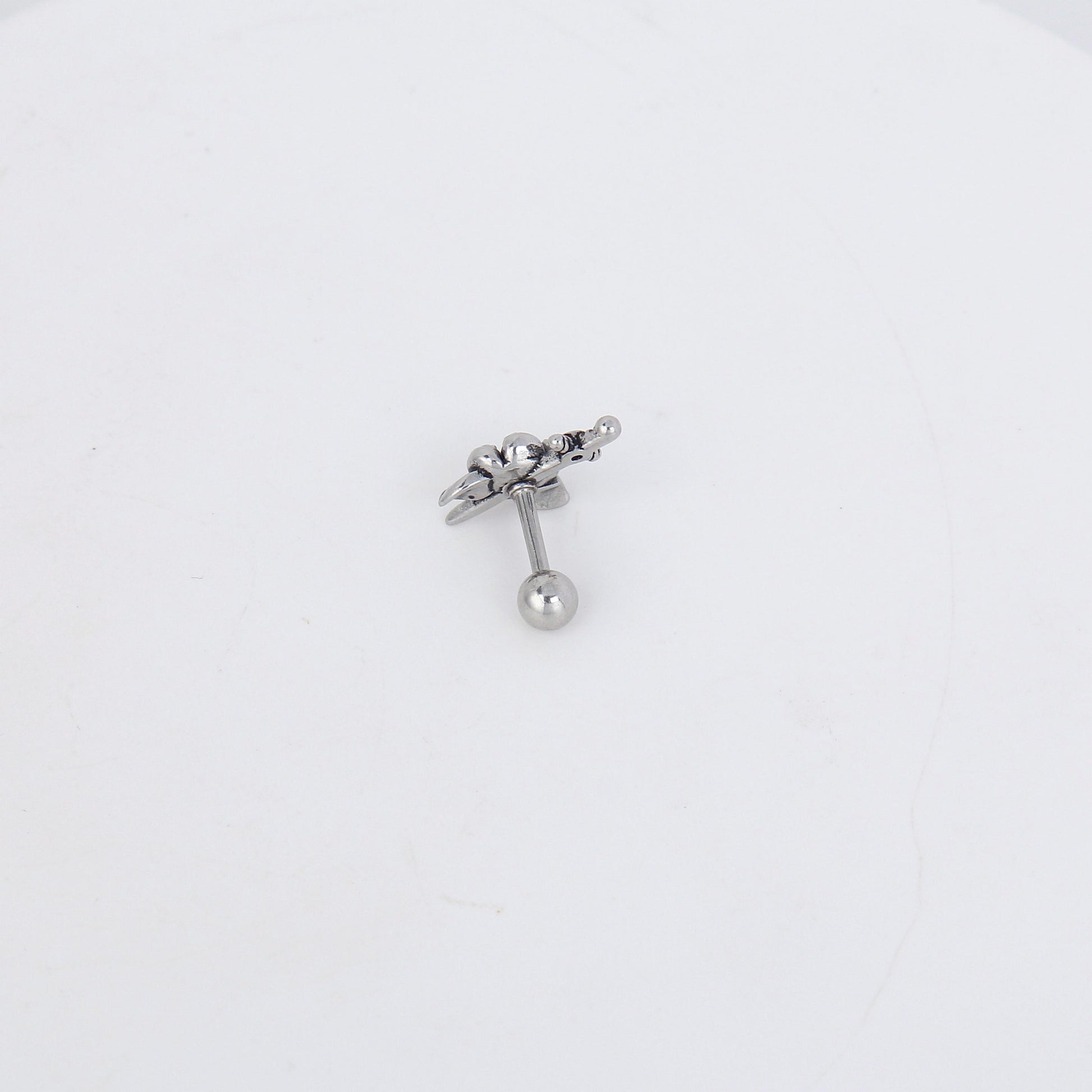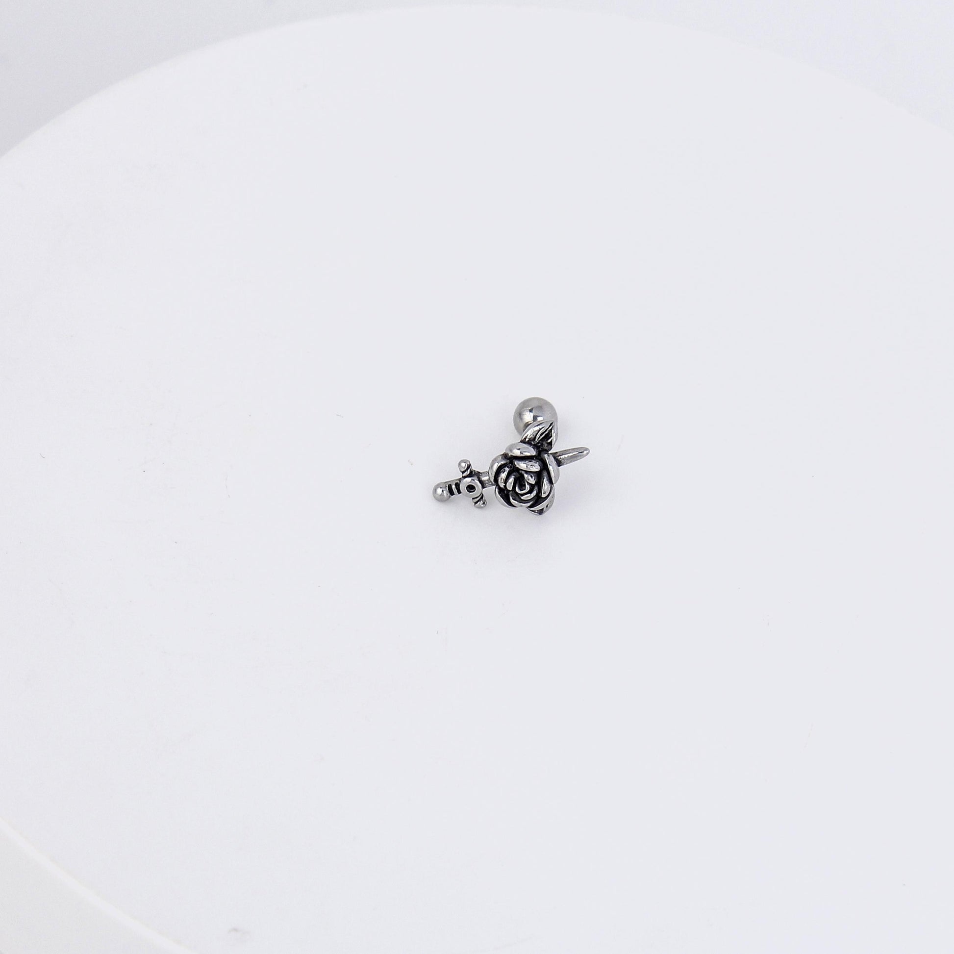 1 count/ Punk Gothic Rose with Sword Stud Earring, Vintage Stud Earring with Round Back, Barbell studs –Titanium Stud, Earlobe earring, Helix Cartilage Earring for Men and Women
