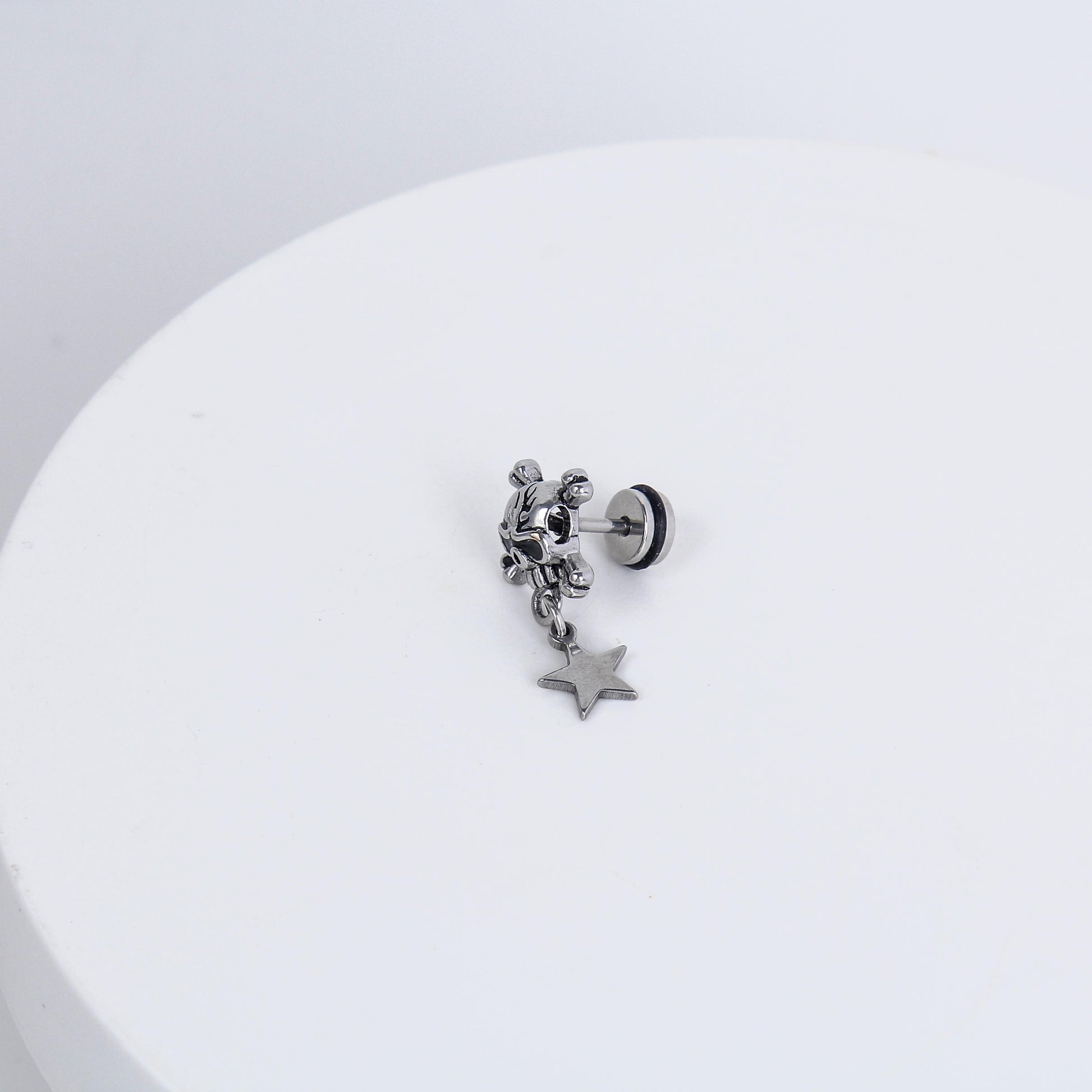 1 count/Punk Gothic Skull with Different Pendant Stud Earring, Vintage Stud Earring with Flat Back,Halloween Party Cosplay –Titanium Stud ,Hypoallergenic Steel,Earlobe Earring, Helix Cartilage Earring for Men and Women