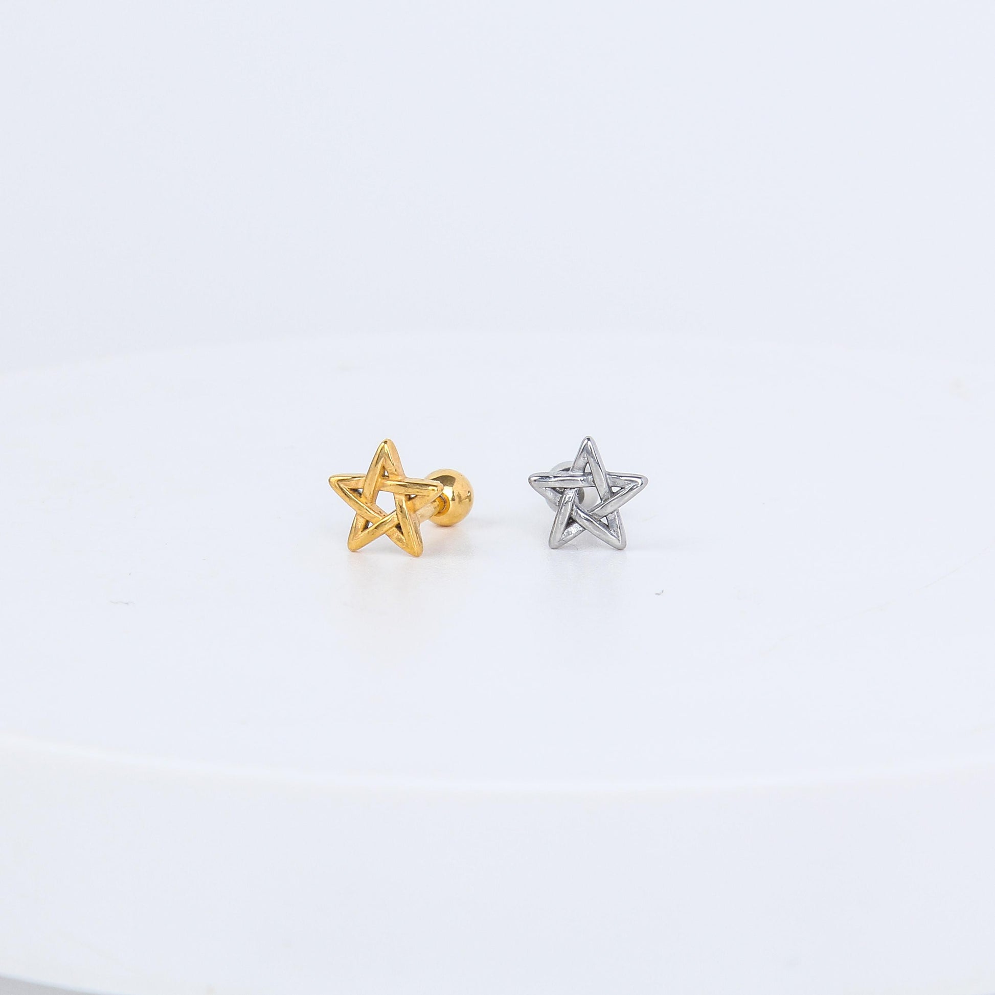1 count/Punk Gothic Star Stud Earring, Vintage Stud Earring with Round Back, Barbell Studs –Titanium stud, Earlobe Helix Cartilage Earring for Men and Women