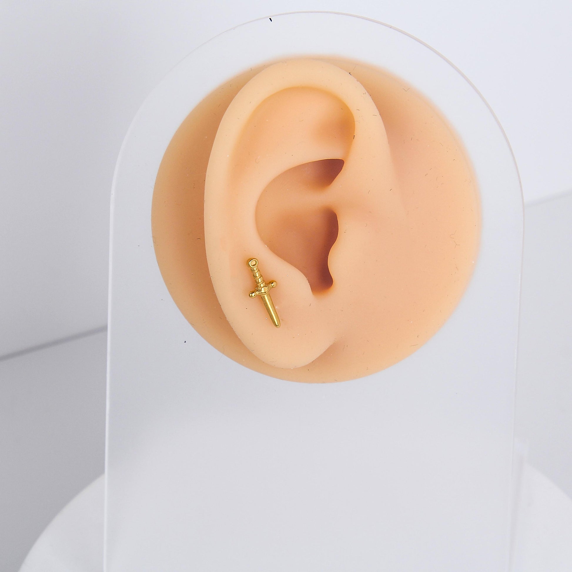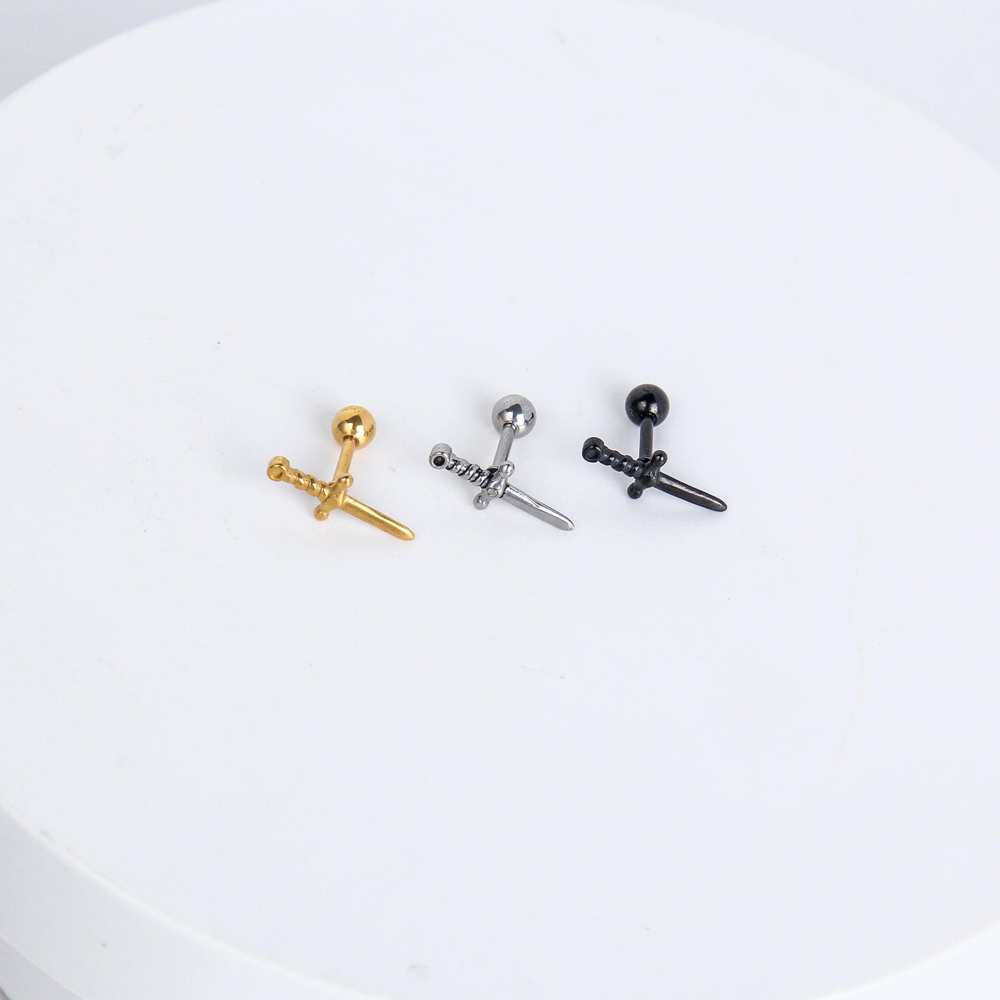 1 count / Punk Gothic Sword Stud Earring, Vintage Stud Earring with Round Back,Barbell Studs Halloween Party Cosplay–Titanium stud, Earlobe Earring, Helix Cartilage Earring for Men and Women