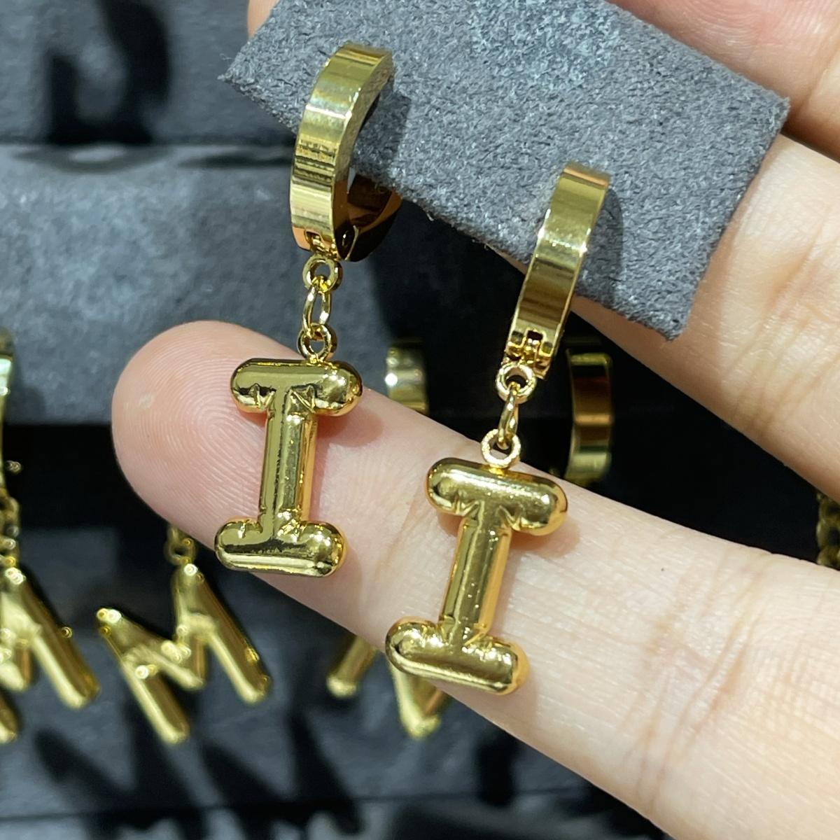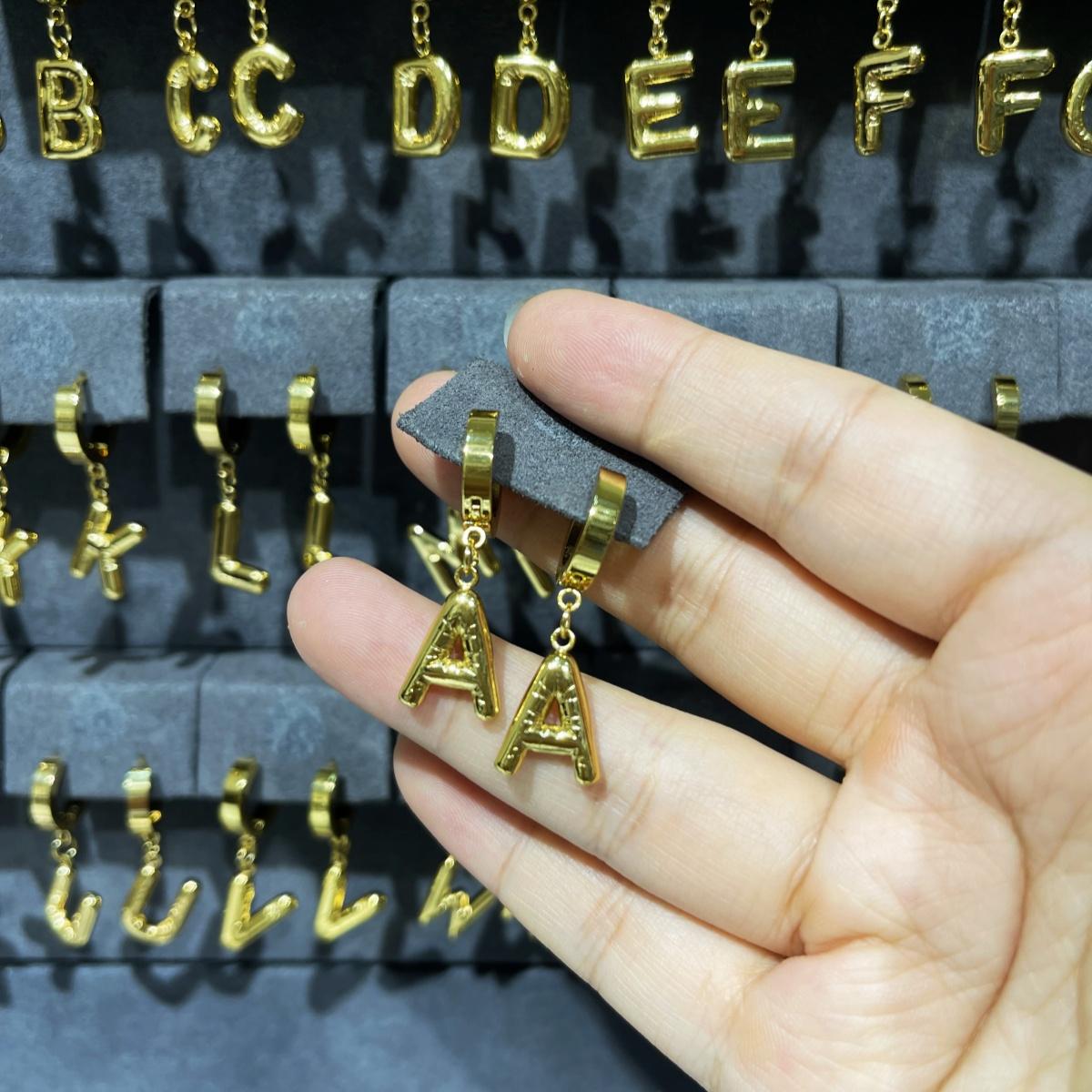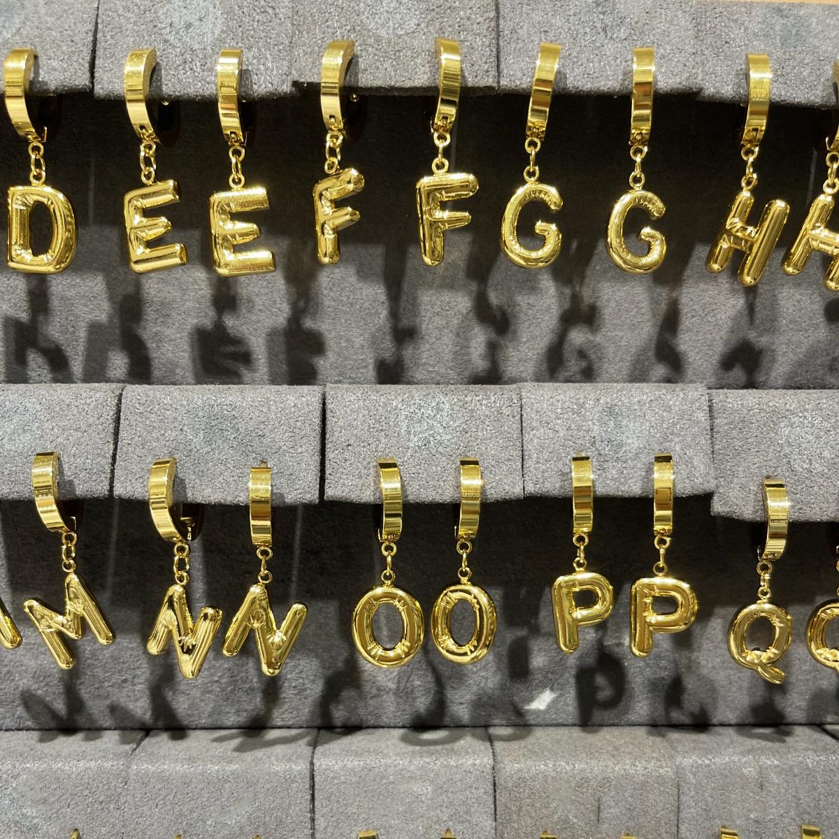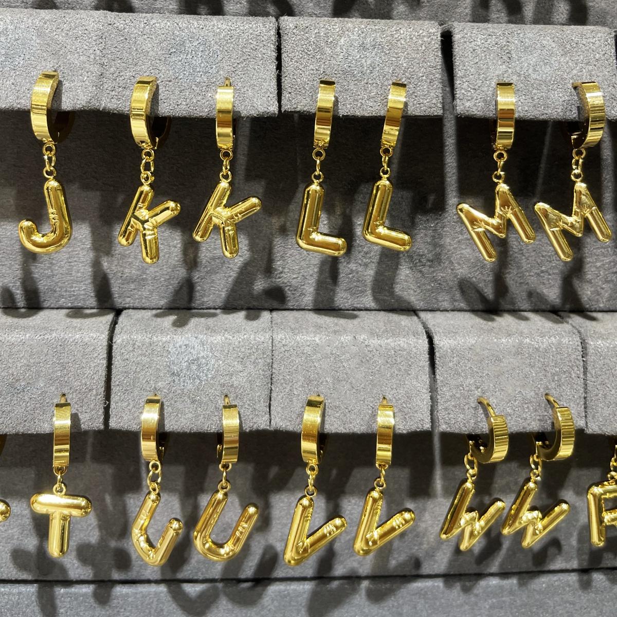 A-Z Bubble Letter Earlobe Earrings, Balloon Initial Hoop Earrings for Women,Stainless Steel, Elegant Puffy Alphabet Jewelry Gift for Women