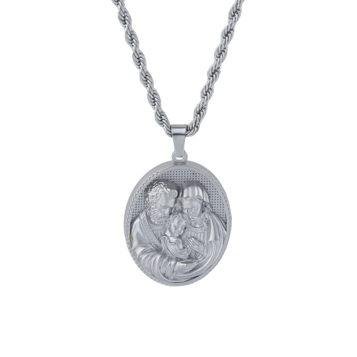 Exquisite Holy Family Pendant Necklace for Men or Wonmen, Stainless Steel Christian Necklace, Religious Silver Catholic Necklace, Perfect Mother’s Day Charm Gift