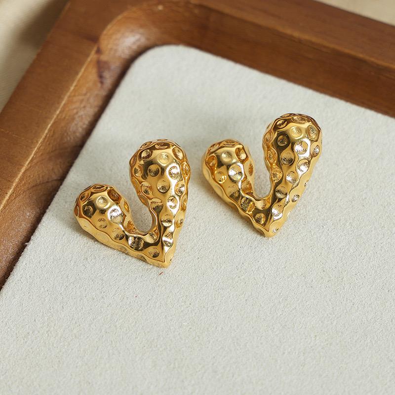 Heart Earlobe Earring with texture– Stainless Steel, Nontarnish earring, Jewelry for Women,Waterproof ,Color Not Fade