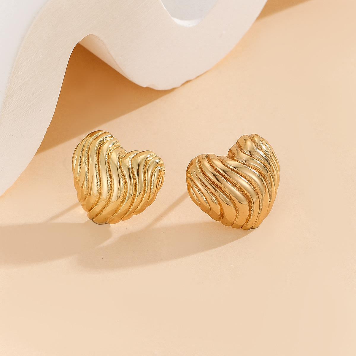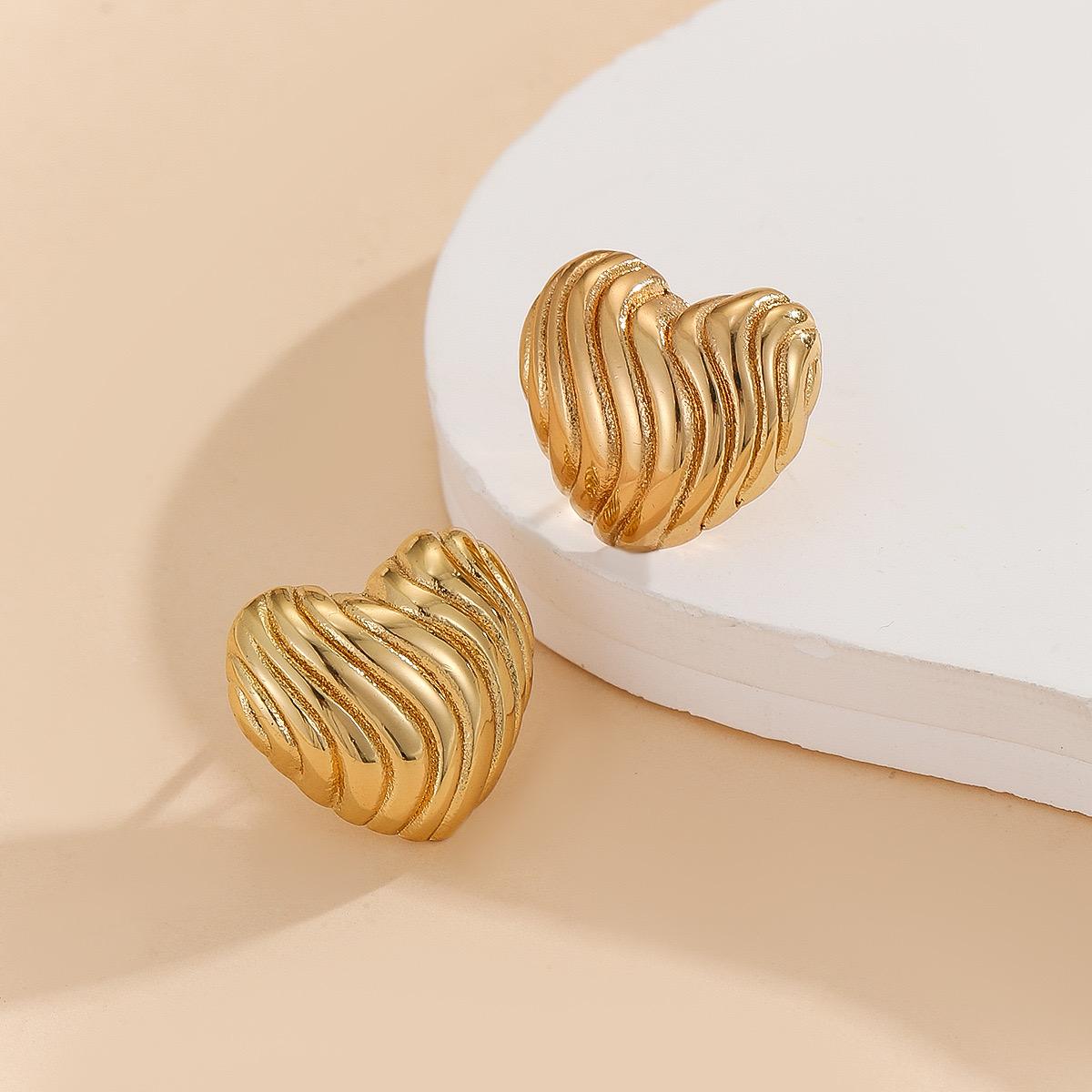 Heart-shaped Textured Earlobe Earrings – Stainless Steel, Nontarnish Earring, Ocean Style Hoop Earring for Women Waterproof ,Color Not Fade