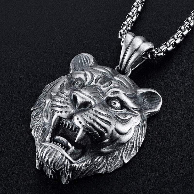 HN008:Hip-Hop Style Necklace, Stainless Steel Tiger Head Pendant Necklace for Women and Men