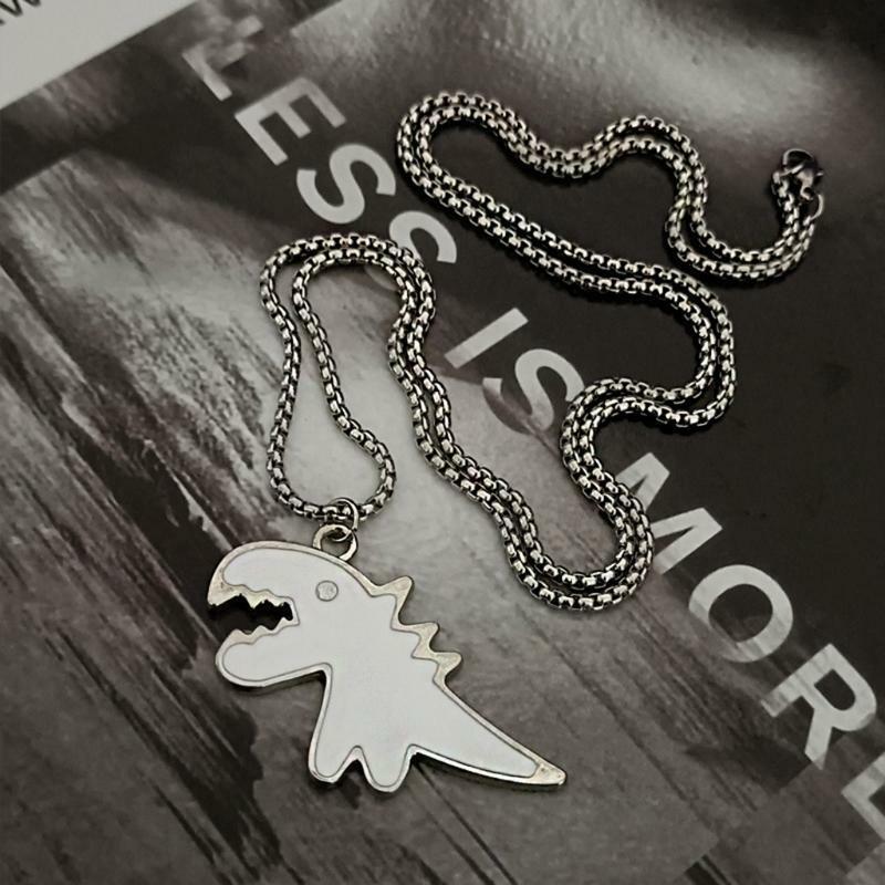 HN016:Hip-Hop Style Necklace, Tiny Animal Dinosaur Pendant Necklace Unique Dragon Charm Necklace for Women and Men