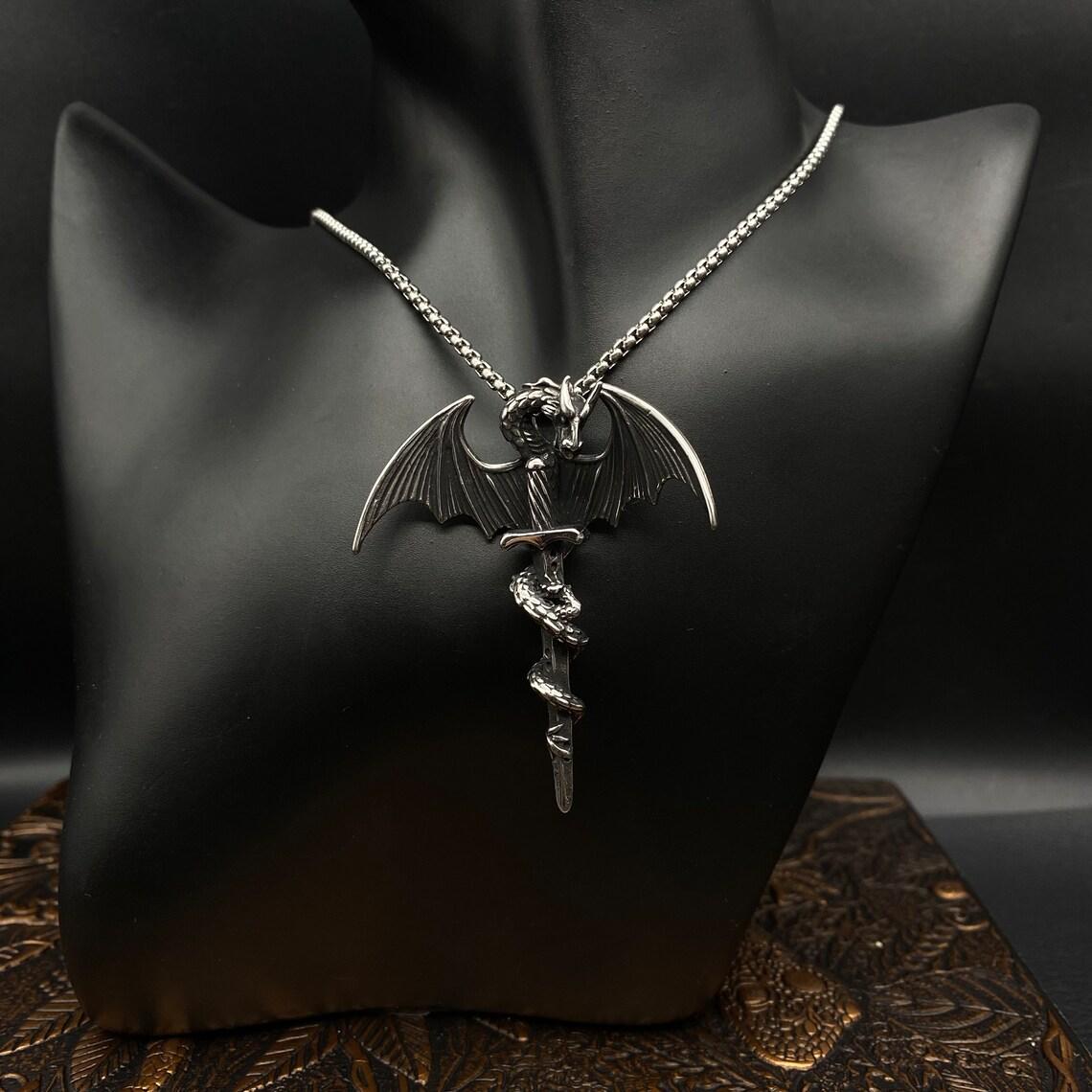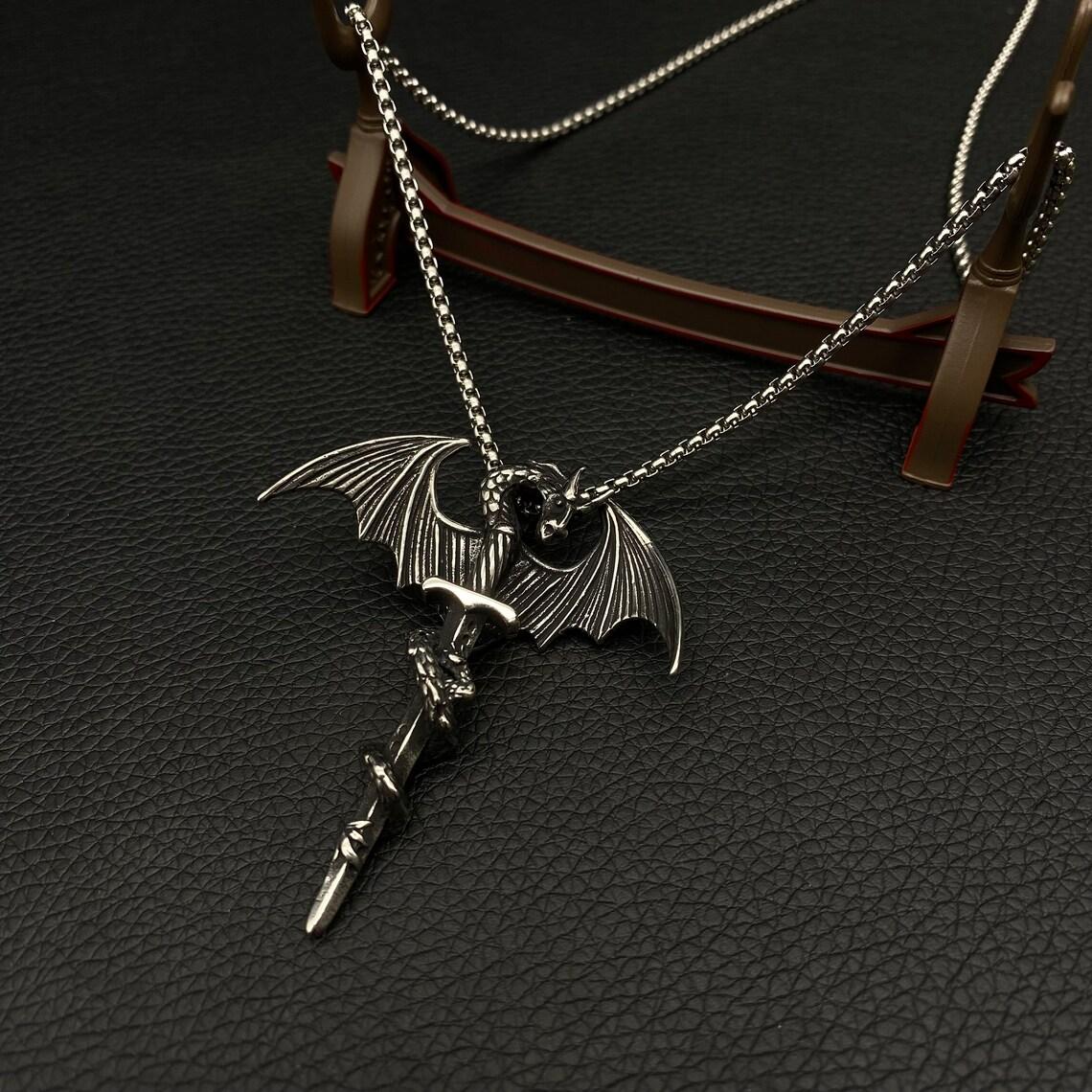 HN022:Hip-Hop Style Necklace,Winged Dragon Sword Necklace for Women and Men