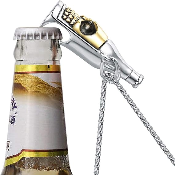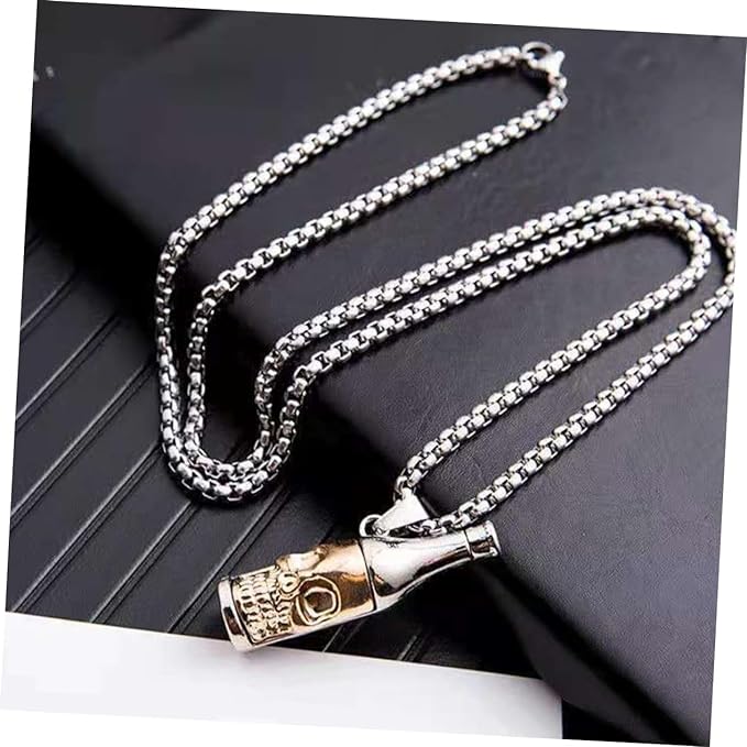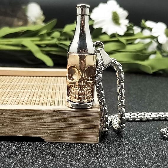 HN029:Hip-Hop Style Necklace,Beer Bottle Opener Necklace, Beer Bottle Keepsake,Stainless Steel Punk Gothic Skull Pendant Necklace for Women and Men