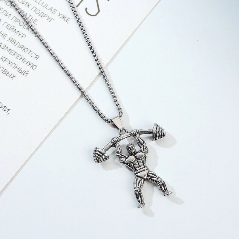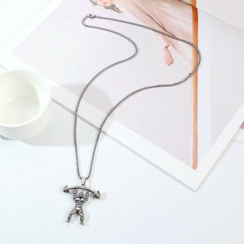 HN055:Hip-Hop Style Necklace,Men Barbell Weighlifting Gym Designed Necklace for Women and Men