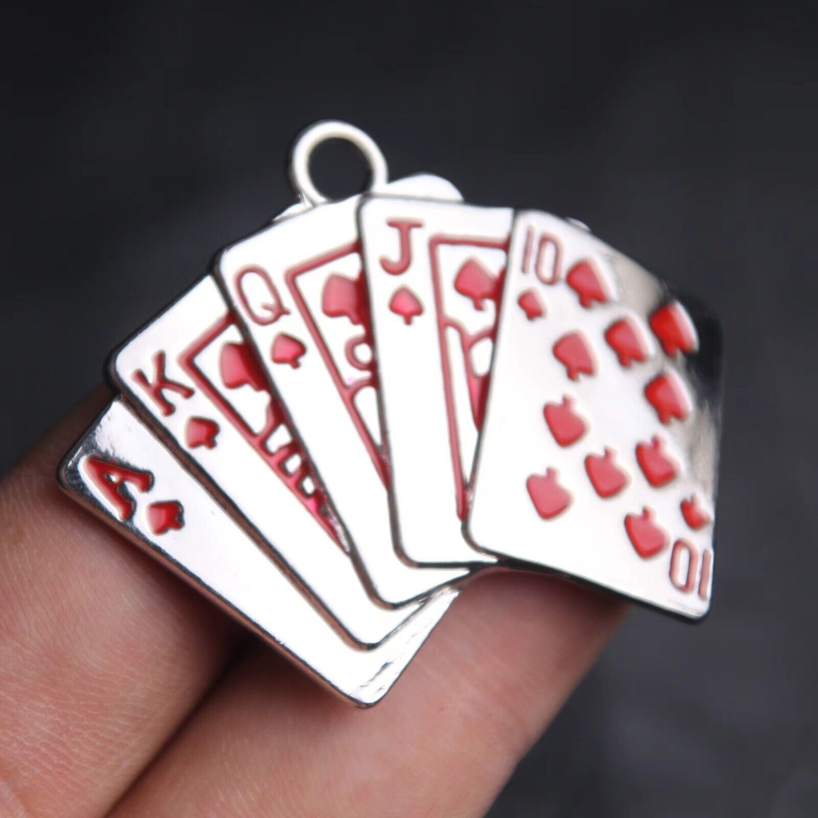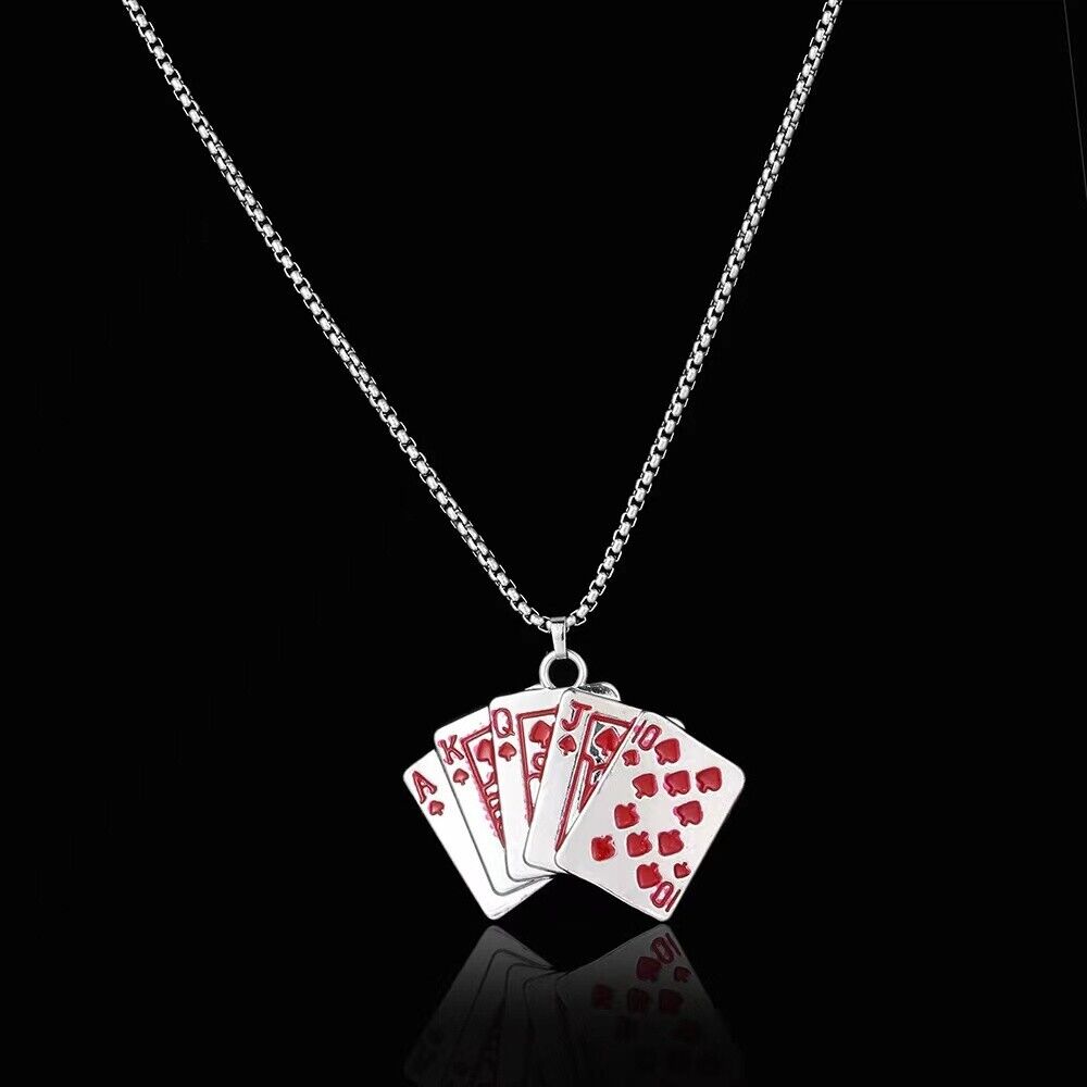 HN057:Hip-Hop Style Necklace,Red Royal Flush Poker Card Pendant Necklace for Women And Men