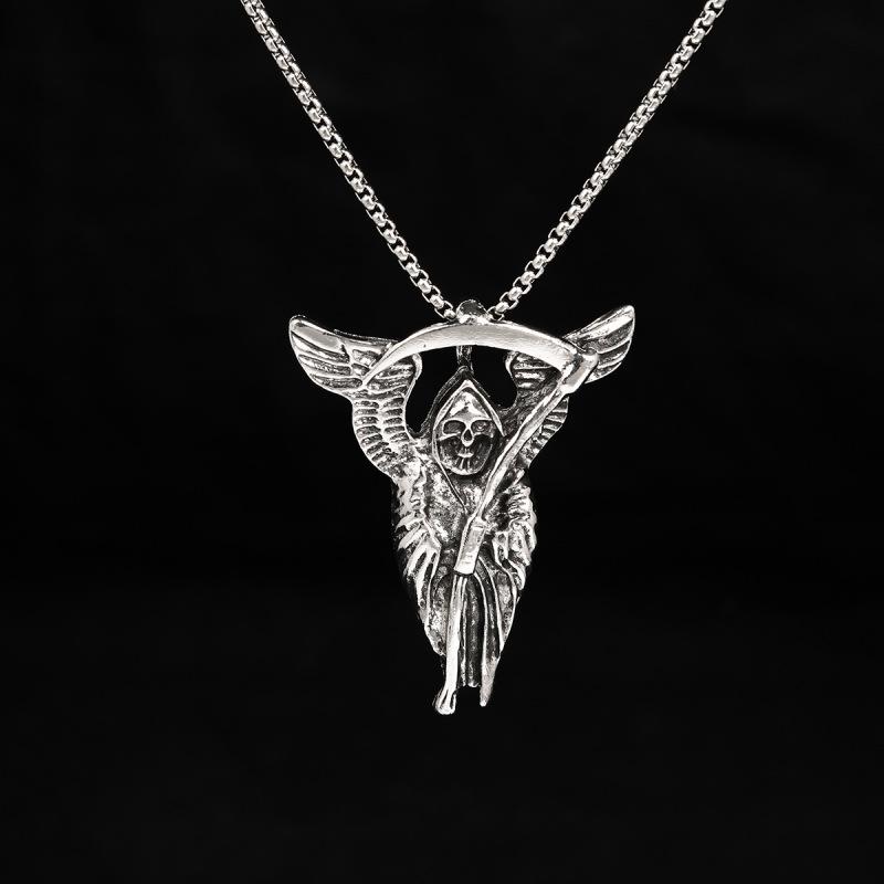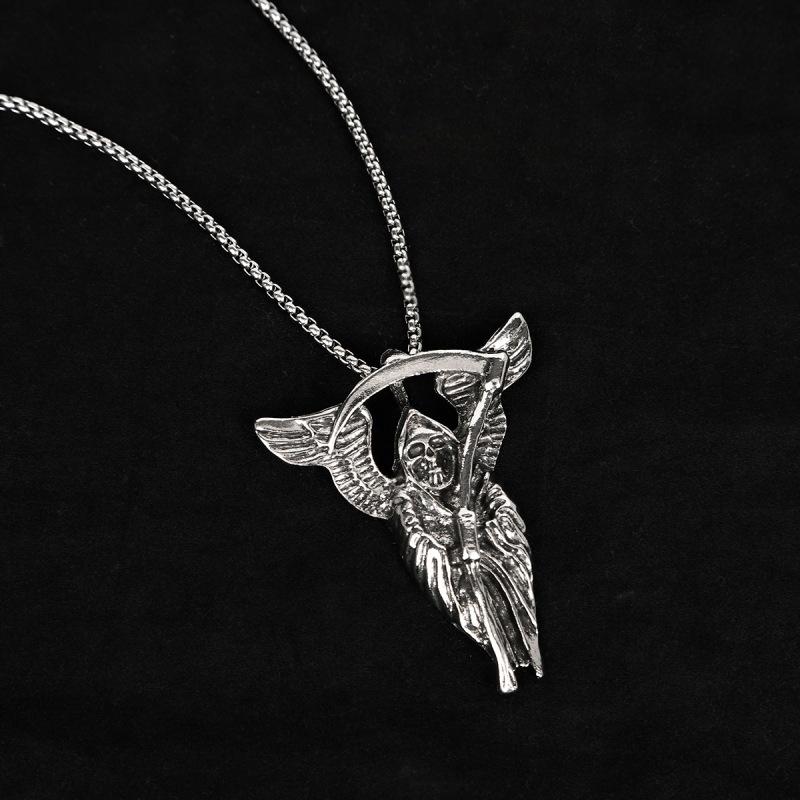 HN065:Hip-Hop Style Necklace,Gothic Grim Reaper Death Scythe Skull Necklace For Women And Men