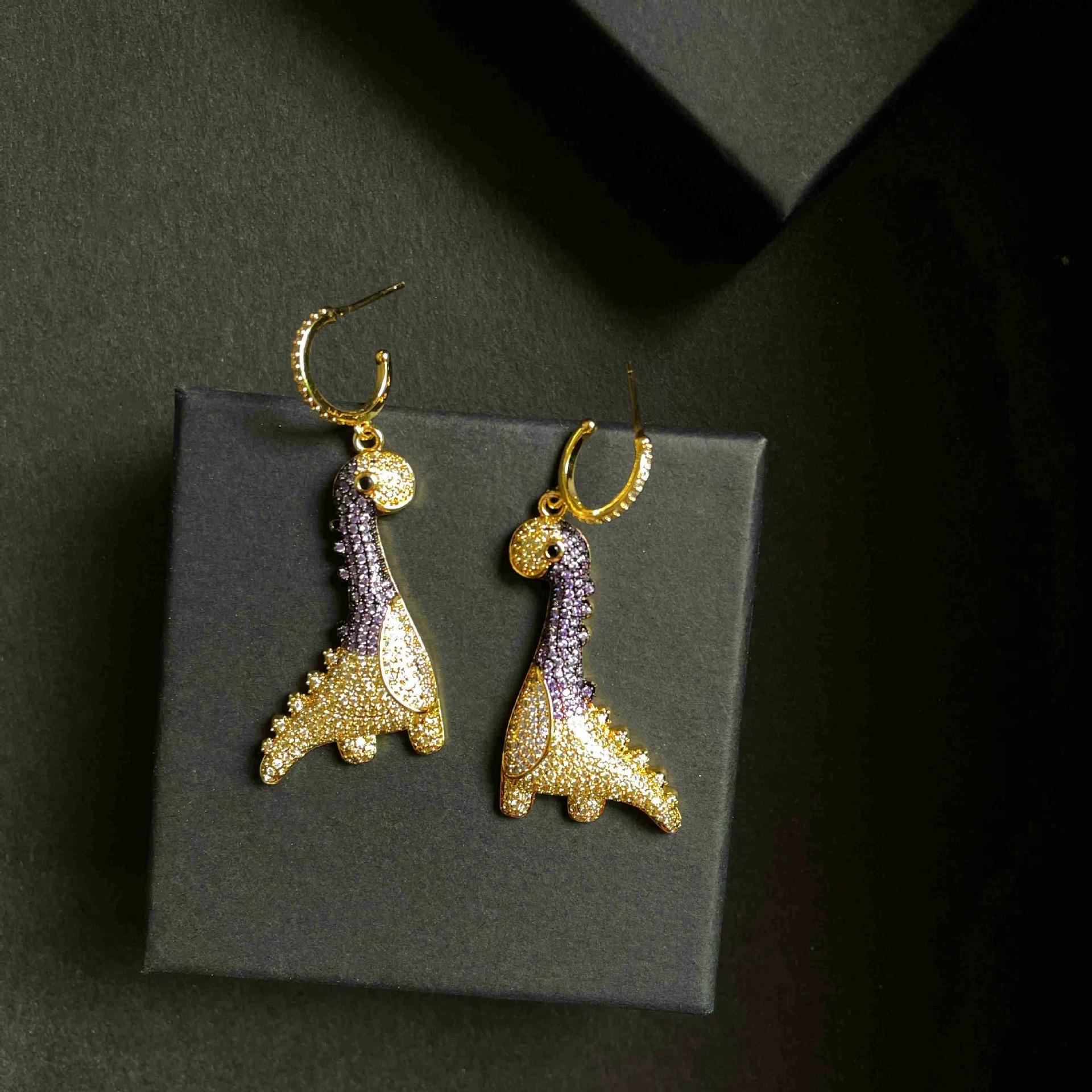 Lovely Dinosaur Dangle Hoop Earring with Zircon, Cute Animal Dangling Charm Drop Huggie Hoops Studs Earring Dainty Jewelry Gifts for Women Girls