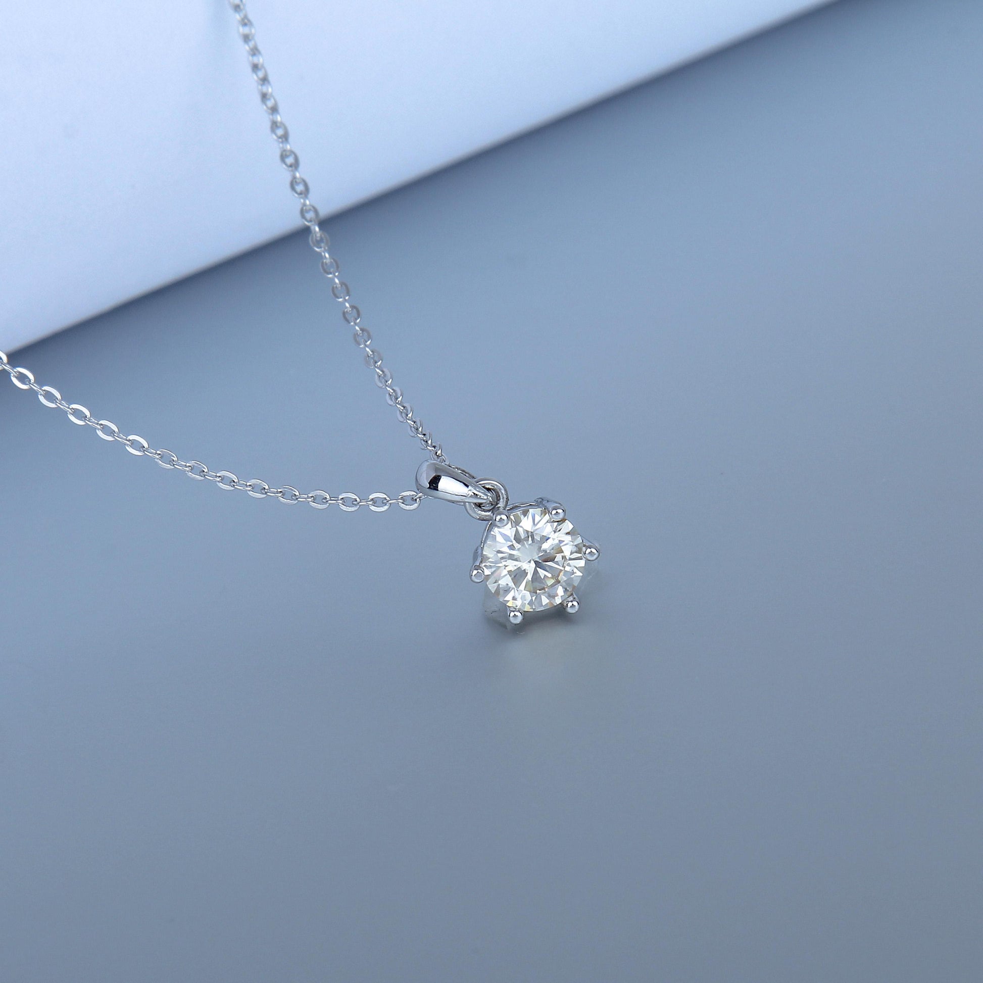 S925 Sterling Silver necklace for women- 1CT Synthetic Moissanite Pendant, Six-prong Set, Minimalist Design, Simple and Timeless, Classic Pendant Necklace,Dainty Gifts for Mom Daughter Girlfriend.