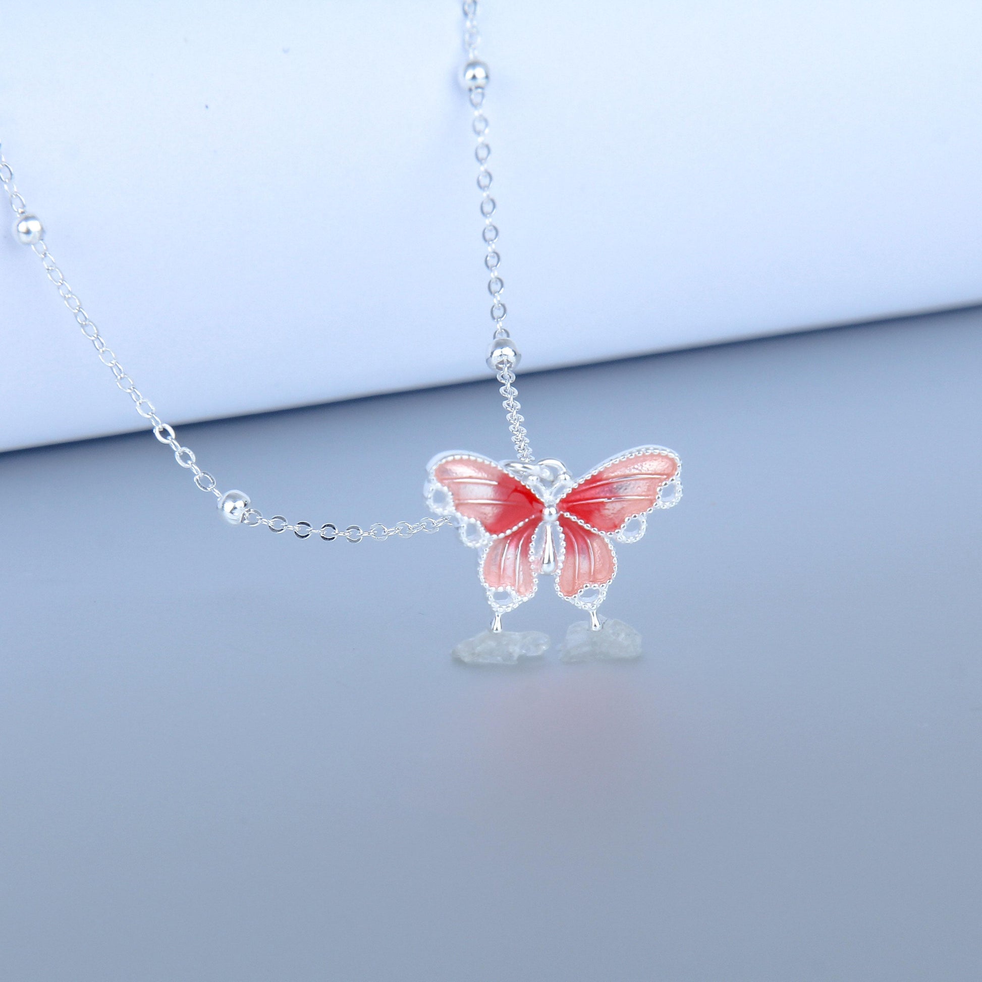 S925 Sterling Silver set for women-Coral Butterfly Pendant,Simple and Timeless, Dainty Gifts for Mom ,Daughter, Girlfriend.