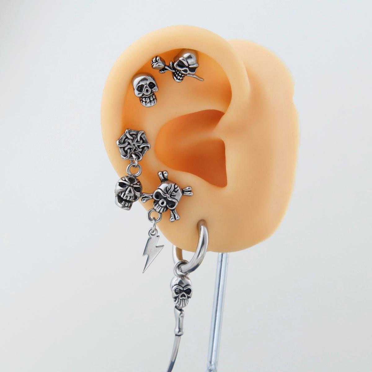 Skull Stud Helix Cartilage hoop Earring Stacking Set – Stainless Steel, Unisex Piercing Jewelry for Men and Wome