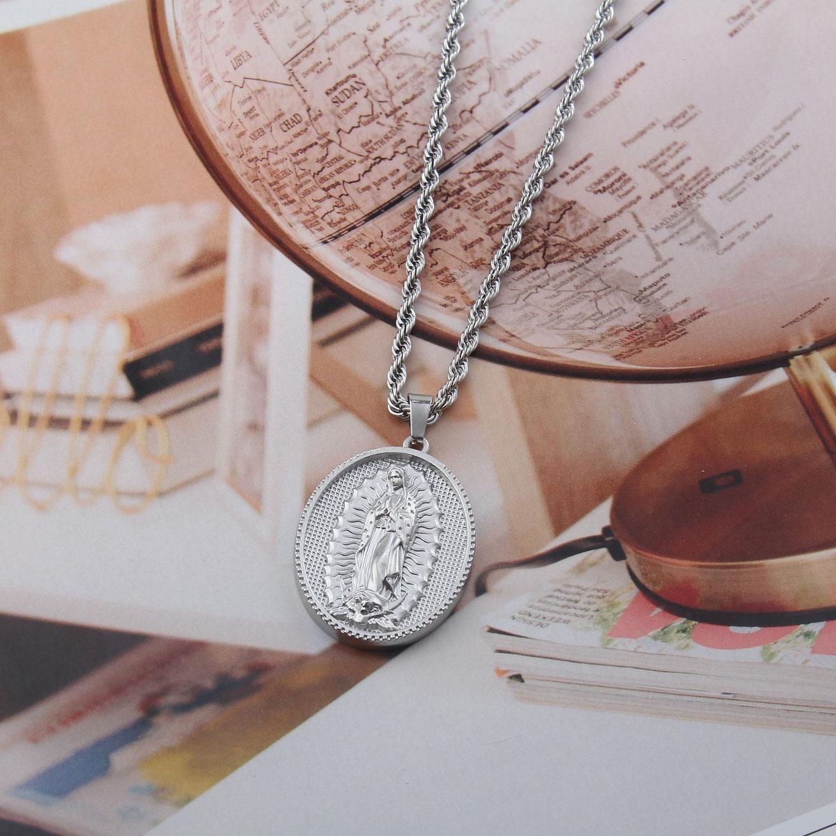 Crafted from durable stainless steel, captures the celestial beauty and spiritual significance of Mary’s apparition.